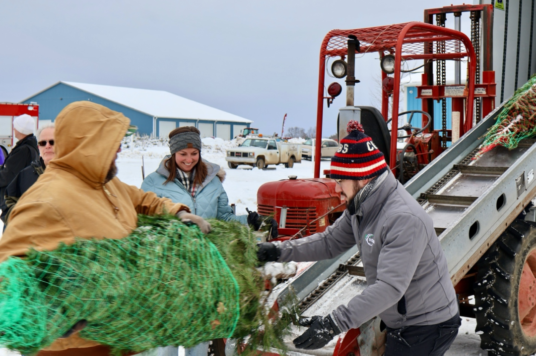 PHOTO INFORMATION: Volunteers gather for the annual Trees for Troops event at Wahmhoff Farms in Gobles.